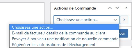 Une fois que vous avez sélectionné les commandes, vous verrez apparaître un menu déroulant en haut de la liste des commandes. Cliquez sur ce menu déroulant pour afficher les actions groupées disponibles.