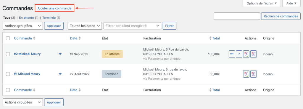 WooCommerce : Commandes