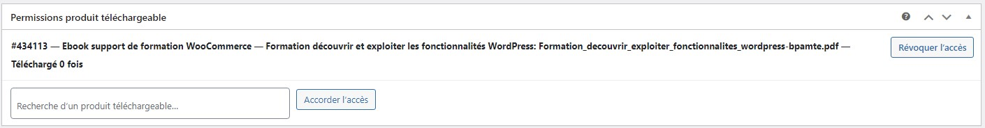 • « Accorder l’accès » à un autre produit (via « Recherche d’un produit téléchargeable … »)