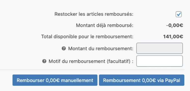 4. Sélectionnez le montant que vous souhaitez rembourser. Vous pouvez soit rembourser la commande entière, soit un montant partiel.