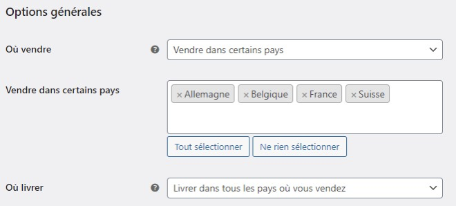 • dans tous les pays : choisissez dans ce cas l’option « Vendre dans tous les pays »,