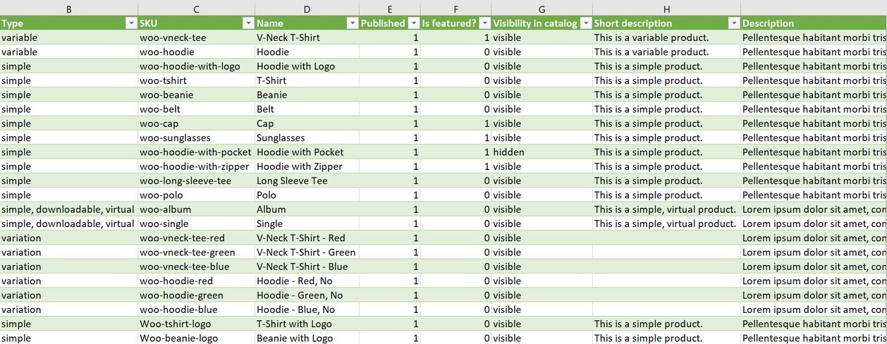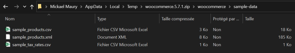 Un exemple de fichier est présent dans l’archive de WooCommerce, dossier « sample-data ».
