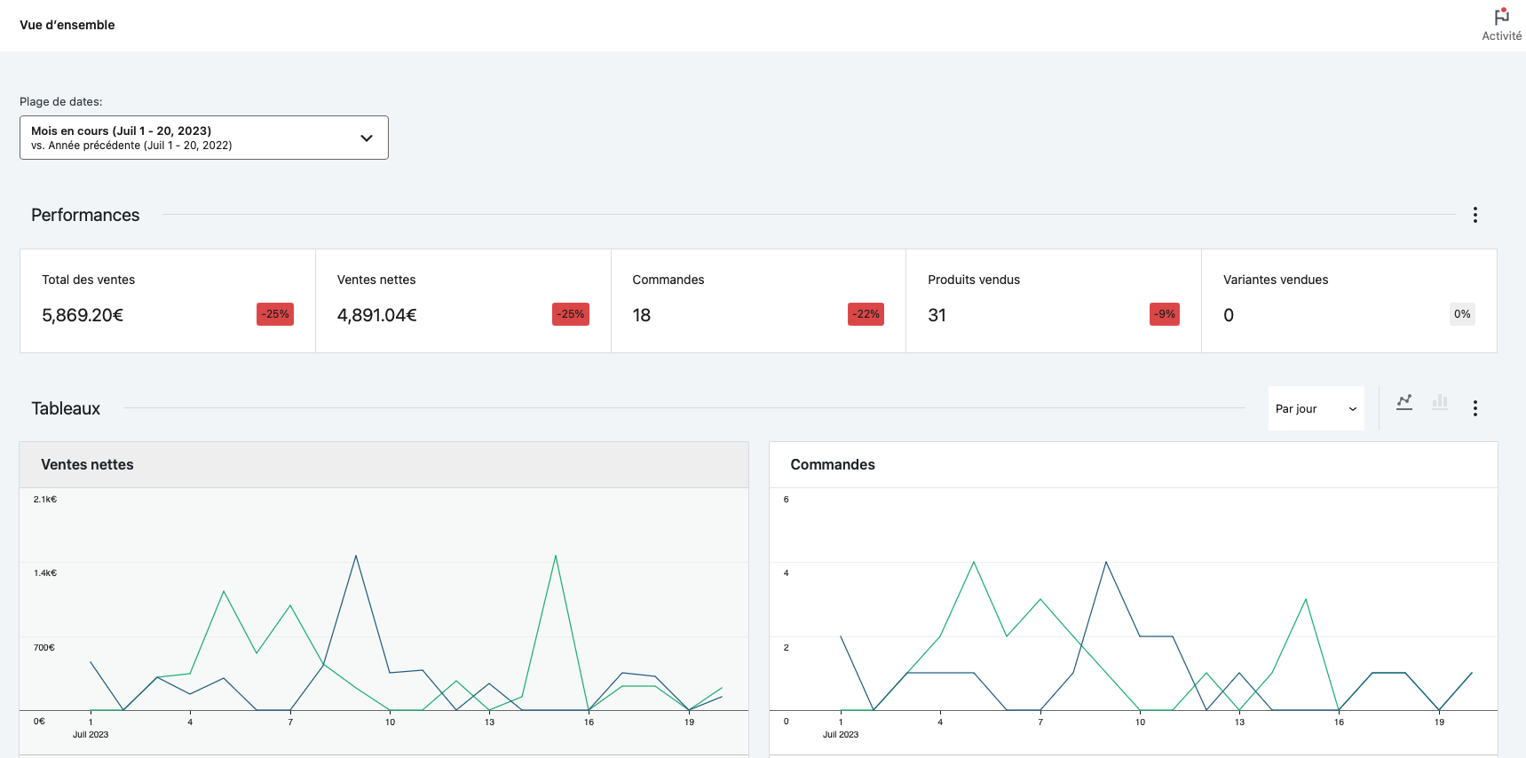 | Analyser les statistiques produits, revenus, variations, catégories, téléchargements |