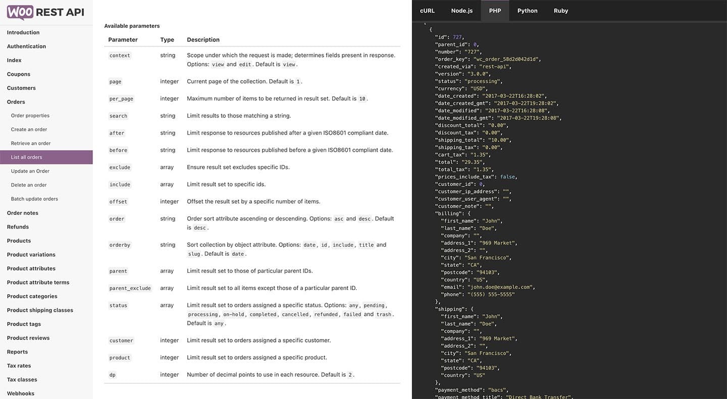 Voici quelques exemples de ce que les développeurs peuvent faire avec l’API REST de WooCommerce :