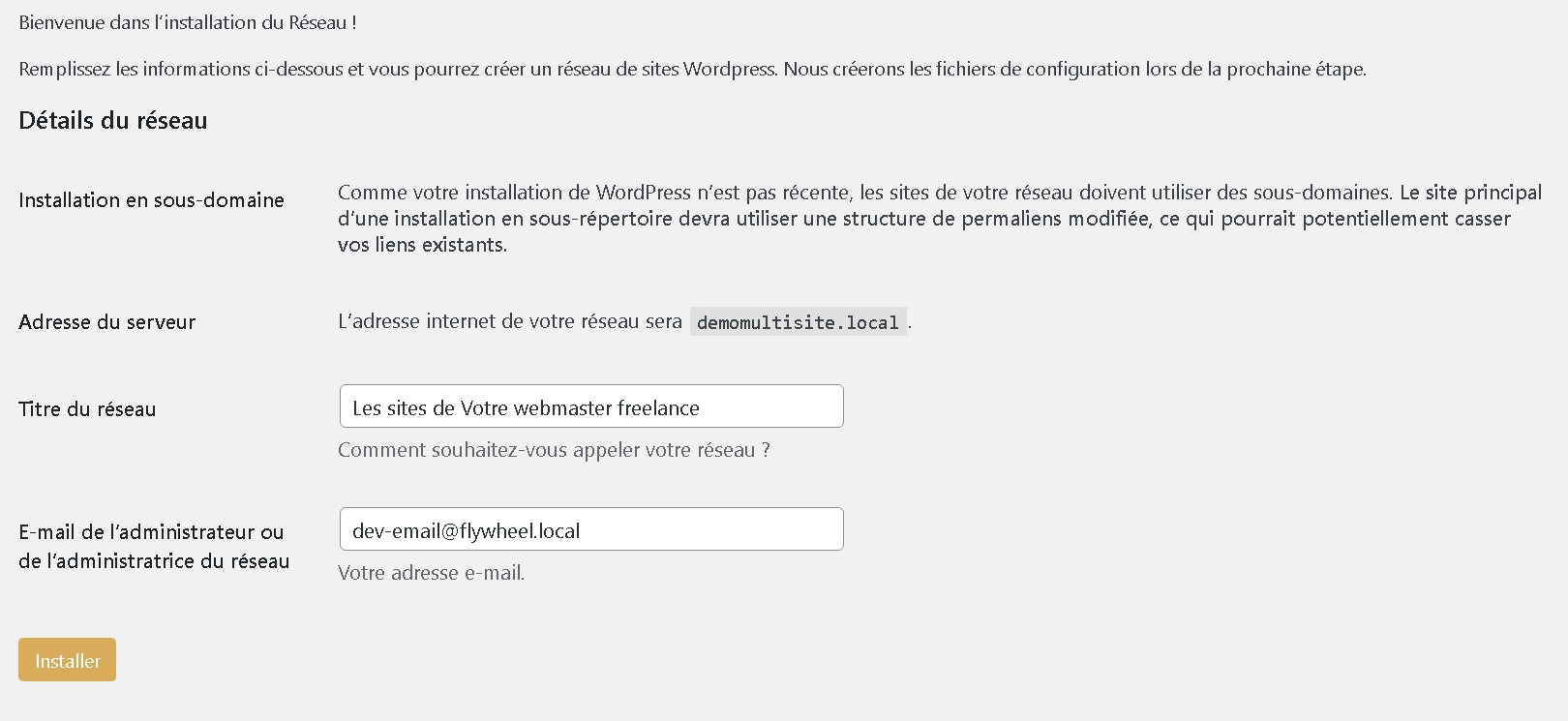L’option installation en sous-dossier est plus flexible et vous permet de créer de nouveaux sites web à la volée.