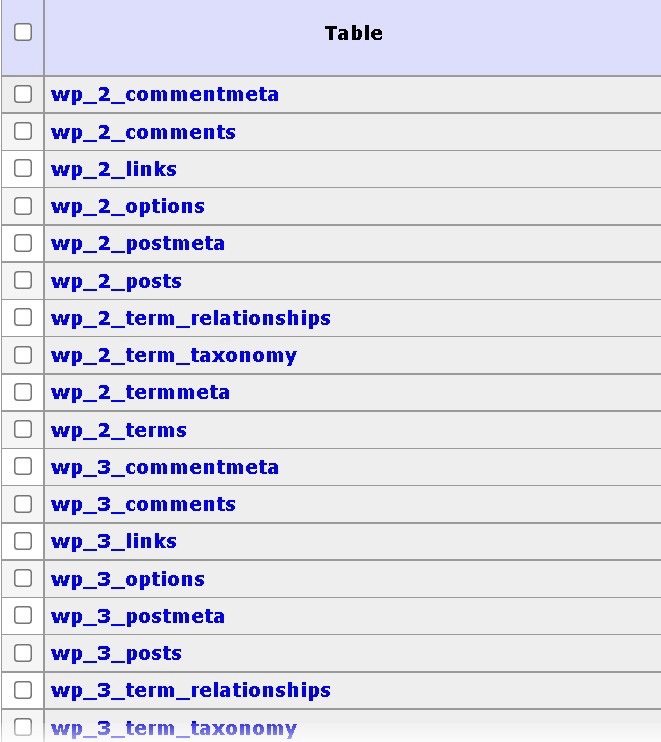 Dans une installation multisite WordPress, la structure de base de données est complétée par de nouvelles tables :